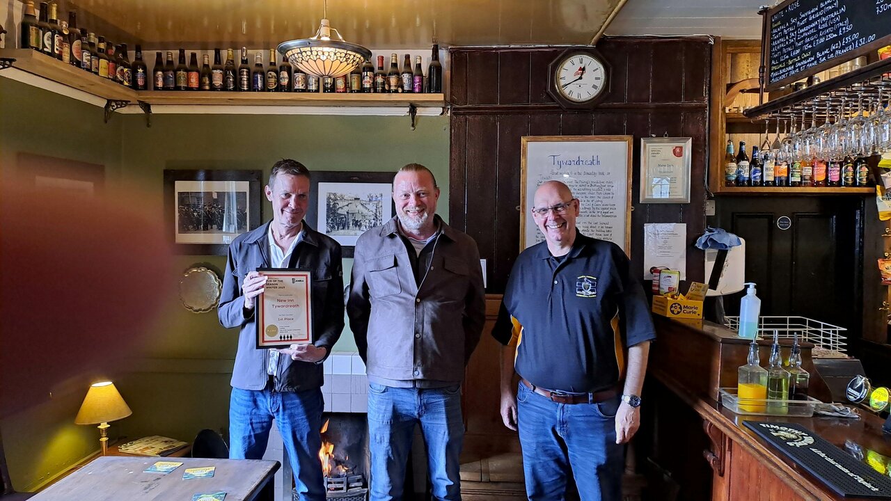 The branch gathered on Thursday, 26th March 2026 for the presentation of the Winter Pub of the Season 2025 award to the New Inn Tywardreath. Dave Pedlar presented the certificate to Christian and Stephen who run the pub and commented on how well deserved it was. The New Inn is a traditional community pub and the social hub of the village, offering people the chance to meet for conversation, food and a pint or two. If you haven’t been there it is well worth a visit.