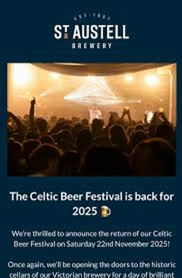 Details and a link to buy tickets for both the Friday evening and Saturday Celtic Beer Festival will be here for tomorrow: https://www.staustellbrewery.co.uk/celtic-beer-festival