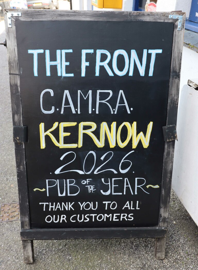 A group of CAMRA members from Cornwall Branch led by Dave Pedlar (CAMRA Cornwall Acting Chair) gathered at the ‘front on Saturday 28 March to celebrate and drink lots of their lovely beer.