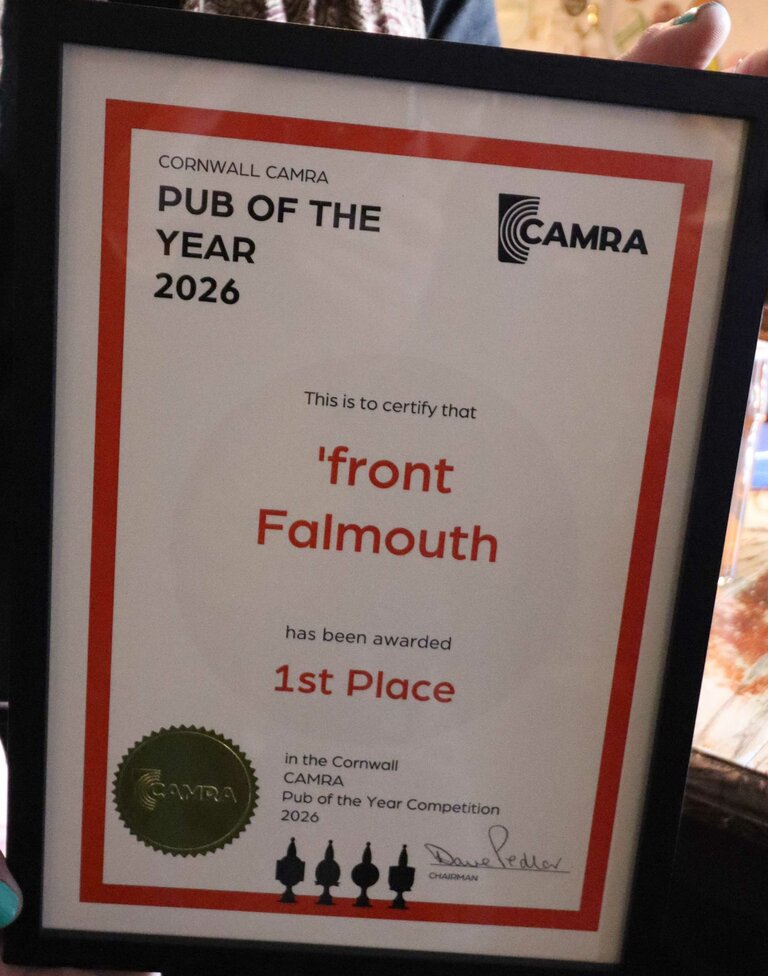 Cornwall CAMRA presentation to 2026 Pub of the Year the ‘Front, Falmouth