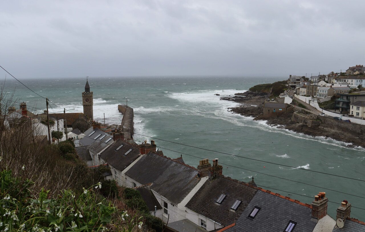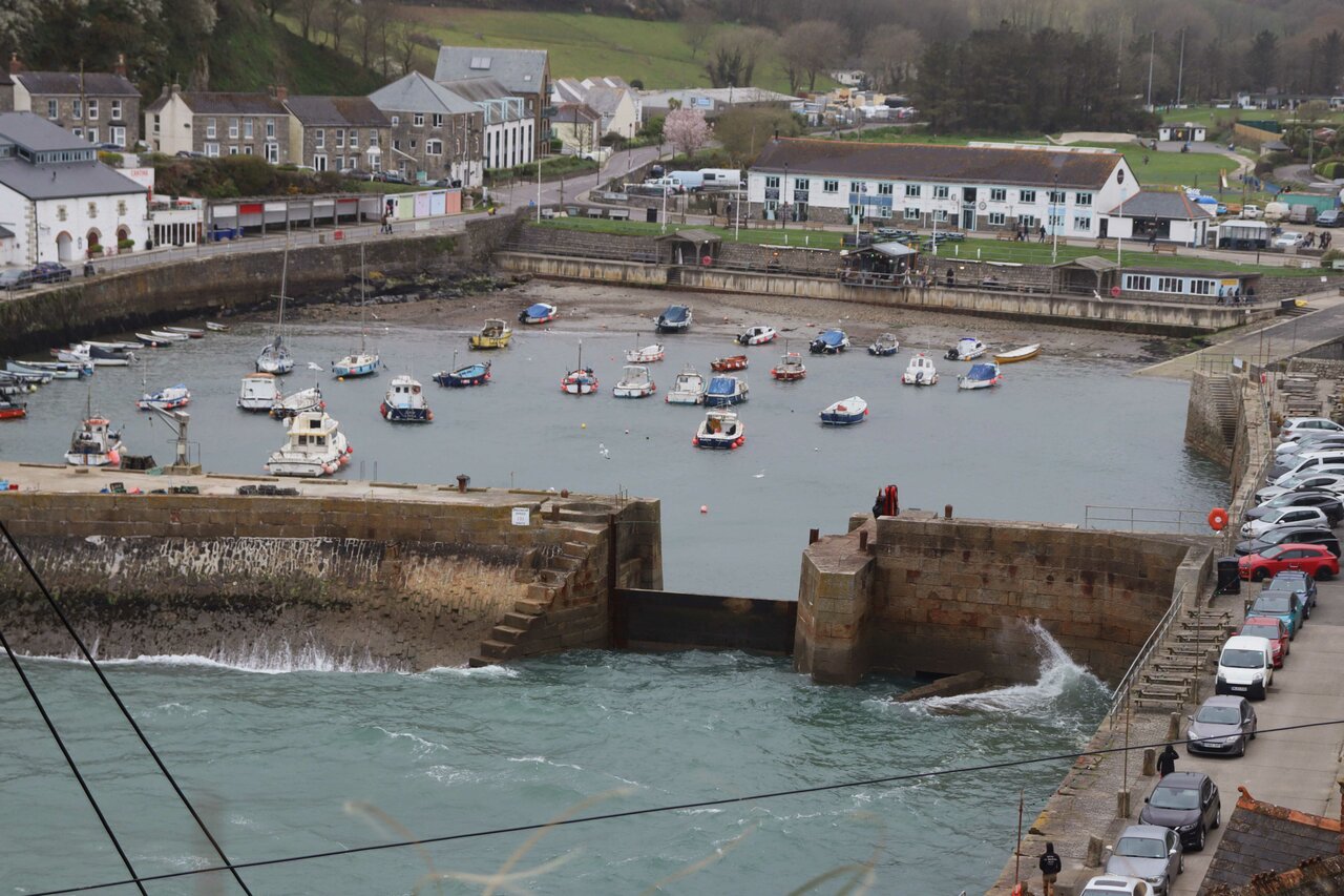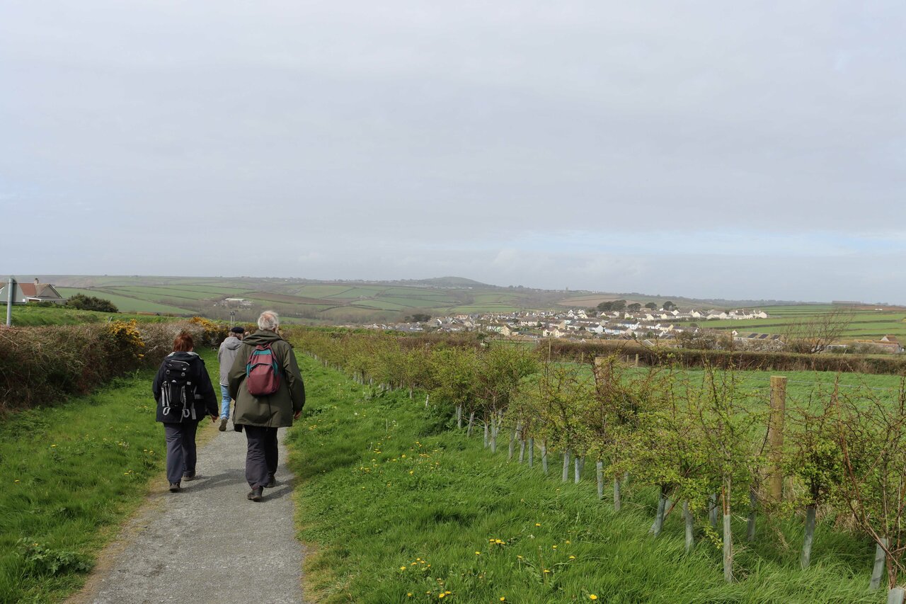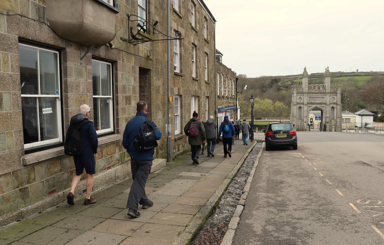 We were hoping for a coffee break at the Penrose Stables café, but there was no room for our large party, so we soldiered on over bracing Penrose Hill to descend into the top of Porthleven via Shrubberies Hill.