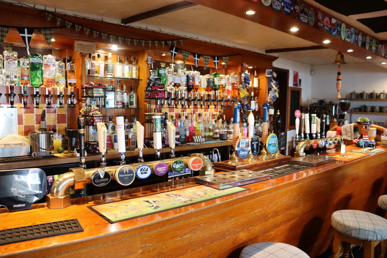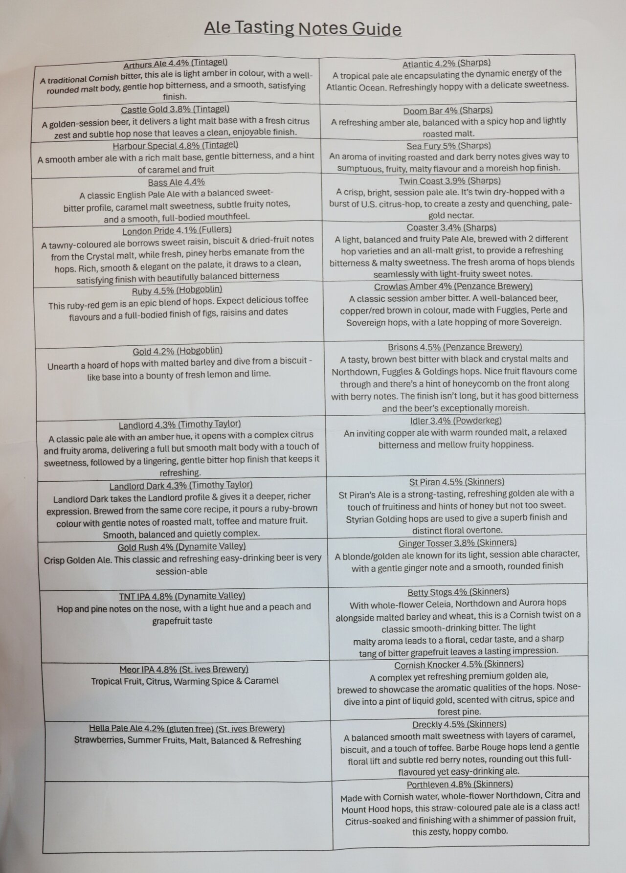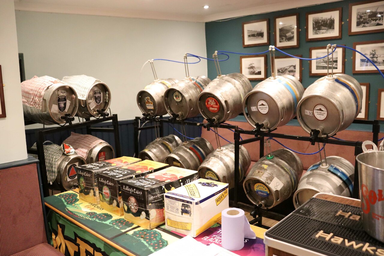 On arriving at the Atlantic Inn, we found the expected beer festival in the pub. On the pub bar were regular beers Sharp’s Doom Bar and Atlantic (what else) and Tintagel Arthur’s Ale. In the cosy rooms round the back were the 24 casks of the beer festival with tables and chairs.
